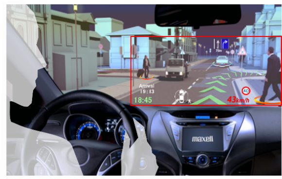 HUD是通过将驾驶员的视线移动降低到最小限度来提高驾驶的安全性。麦克赛尔的AR-HUD采用的是自主开发的自由曲面光学技术,在较远距离的前方投射出大画面虚像。
