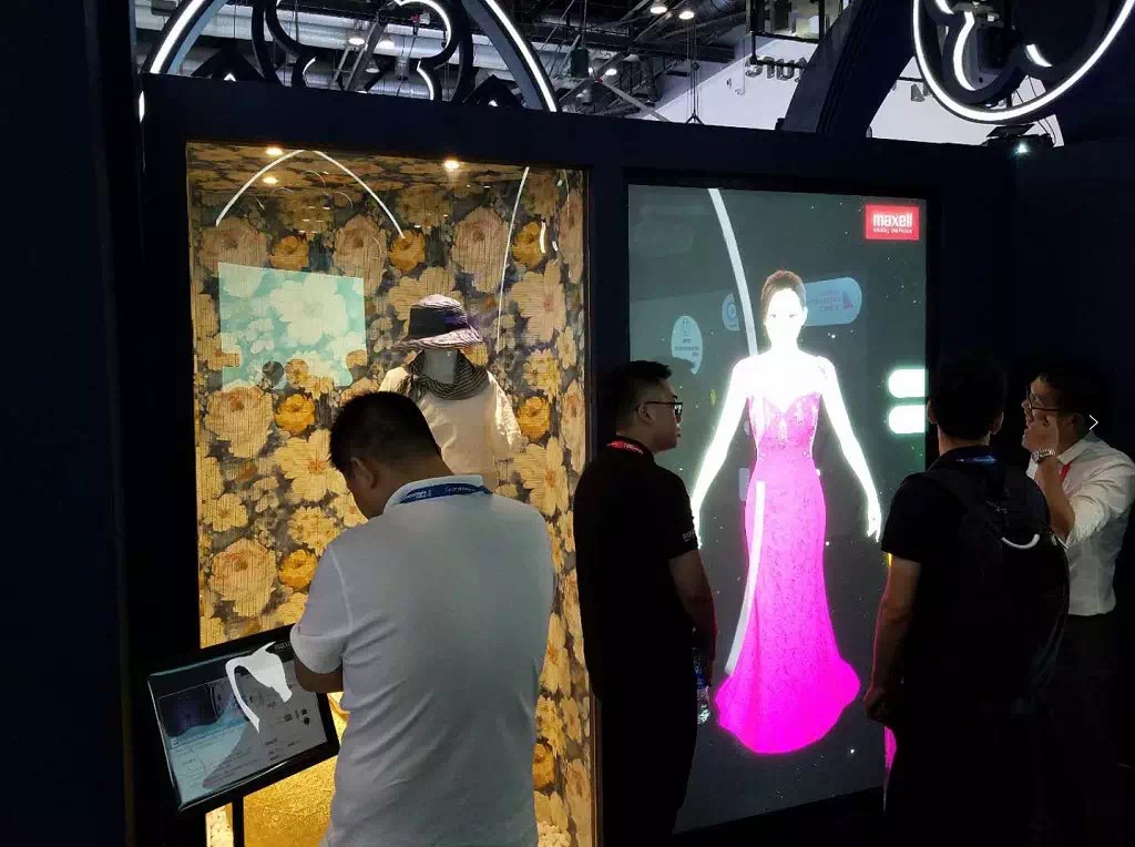 本展区是以智能橱窗Show为灵感设计的时尚橱窗展项。投影机配合电控玻璃,将橱窗功能最大化,既兼备传统橱窗的实物展示功能,又让产品以一种智能化的姿态展现在顾客眼前。通过线下线上的虚实转换,让实体产品更贴近顾客消费需求,引导全新橱窗购物理念。现场观众积极参与,选择好服装后,投影画面自动消失,屏幕变为透明,所选择的服装通过导轨展现在观众面前,虚实结合的巧妙构思颇具创意。