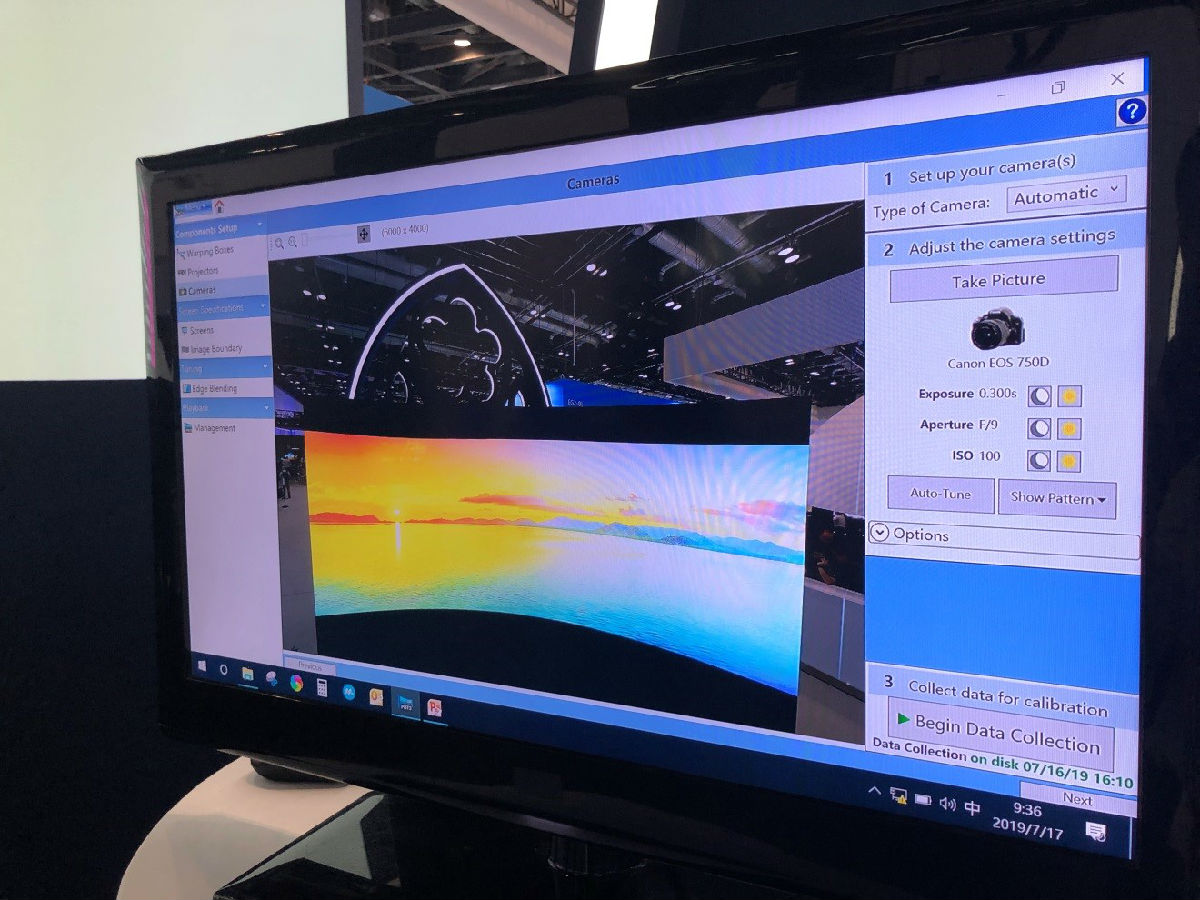本展区介绍麦克赛尔全新融合拼接异形操作工具“Projector Blending Tool 3”。通过使用指定相机或摄像头,可以同时对堆叠、拼接、融合、异形、亮度、颜色进行自动调整,整个调试过程约10分钟,超越以往传统的调试方式,大大地解放了劳动力更节约了时间和成本。
