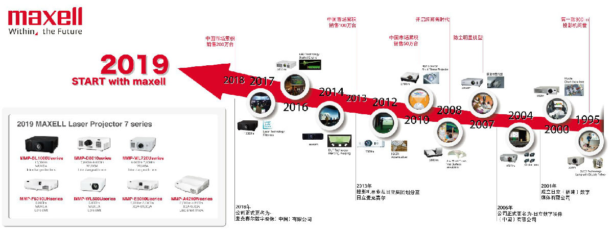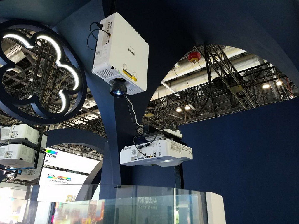 展会现场,还以机身异形投影的方式展示了麦克赛尔主打激光投影机,并展示了麦克赛尔投影机悠久的历史,让观众全方位了解麦克赛尔。