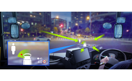 设备及导航信息配合,将死角信息通过HUD显示,降低驾驶员负担,